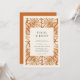 Quadro De Padrão Floral Retro, Convite De Casamento. Moldura de padrão de flor em estilo retrorreflector, tipografia preta e cores de fundo laranja.