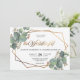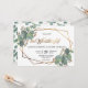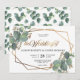 Este é um belo convite de casamento com eucalipto e design de moldura geométrica dourada. Inclui-se um fundo correspondente com o padrão das folhas de eucalipto.