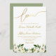 Uma combinação moderna de lindas flores de jardim e falsa caligrafia de ouro. As adoráveis cores verde e douradas, texto e outras características deste modelo de convite para casamento podem ser personalizadas. Você pode editar o texto para texto, fonte, tamanho e posicionamento.
