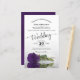 Este belo convite para o casamento apresenta uma design romântica com um solteiro de longa data empilhado rosa roxo real, deitado do seu lado e refletindo numa piscina de água. A tipografia apresenta caligrafia de script e um layout sofisticado. A parte de trás é uma violeta ou cor roxa profundamente marmoreada. Uma maravilhosa maneira de convidar seus amigos e família para compartilhar sua alegria em seu dia especial.