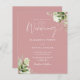 Este rosa botânico moderno e empoeirado deixa o convite para casamento orçamentário pode ser personalizado com seus detalhes de casamento em um texto elegante. Com as iniciais do monograma no verso. Projetado por Thisnotme©