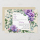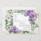 Rosas roxas e folhas de eucalipto adoráveis enquadram seu convite de casamento e precisam saber informações produzindo um convite maravilhoso para familiares e amigos.