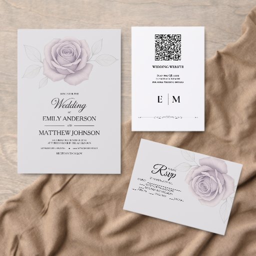 Convite para Casamento de Rosa Roxo Elegante do De
