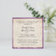 O convite apresenta textura de papel pergaminho com linhas roxas frias, ao redor de um quadro ao redor da sua fotografia de noivado, com texto que diz "ter e segurar" de um lado com os detalhes do seu casamento no outro, com uma borda laranja ao redor das bordas do convite.
