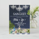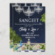 Elegante e moderno, este convite de casamento mínimo branco e azul de Sangeet dá o tom perfeito para a sua celebração pré-casamento. Com um design elegante, destaca a alegria e a tradição do Sangeet, oferecendo um novo impulso à celebração de eternos de música e dança.