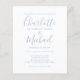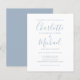 Apresentando nomes de estilo de assinatura, este elegante convite de casamento azul empoeirado para orçamento pode ser personalizado com suas informações em caracteres de chico. Projetado por Thisnotme©