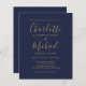 Apresentando nomes de estilo de assinatura, este elegante convite de casamento azul e dourado para marinho de orçamento pode ser personalizado com suas informações em caracteres quicos. Projetado por Thisnotme©