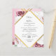 Elegante tema de casamento floral com flores rosas pinceladas e cor-de-rosa com um quadro geométrico de efeito ouro. A partir da coleção "Modern Floral and Geométrico", este esquisito e sofisticado layout mostra seus detalhes de casamento em um roteiro de na moda e tipografia moderna com um buquê rico sobre fundo branco. Este convite para casamento não vem com um envelope, mas um envelope de tamanho A6 seria um ajustado perfeito para isso. Também disponível neste site