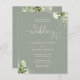 Este elegante convite para o casamento floral verde de sábio verde pode ser personalizado com os detalhes de celebração definidos na tipografia quic. Projetado por Thisnotme©
