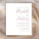 Este simples convite de casamento moderno contém texto empoeirado de rosa num fundo branco. Adicione os nomes da noiva e do noivo na caligrafia de escrita manual do na moda e os detalhes na fonte sans serif. O reverso é uma sombra de rosa sólido empoeirado. NOTA: os envelopes não são incluídos automaticamente nestes convites de orçamento, portanto lembre-se de escolher a opção "envelopes brancos"!