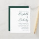 Este simples convite de casamento moderno mostra o texto verde esmeraldo em um fundo branco. Adicione os nomes da noiva e do noivo na caligrafia de escrita manual do na moda e os detalhes na fonte sans serif. O reverso é uma sombra de verde esmeralda sólido.