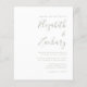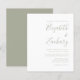 Este simples convite de casamento moderno apresenta texto verde sábio sobre fundo branco. Adicione os nomes da noiva e do noivo na caligrafia de escrita manual do na moda e os detalhes na fonte sans serif. O reverso é uma sombra correspondente de verde de sábio sólido.