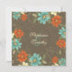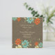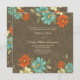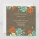 Este convite de casamento chic 5.25x5.25 tem um na moda vintage azul-do-mar, laranja queimado, creme mole e design floral verde-oliva no topo e no fundo. Há algumas designs de espiral de bolinhas junto com uma borboleta na parte inferior direita. O fundo tem uma design de folhagem desbotada com uma cor escura esticada. Você pode personalizar facilmente as informações da cerimônia de casamento no meio.