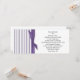Convite de casamento de striping roxo e branco com arco roxo e fita. Por favor, note, isto não é uma fita real, mas um gráfico. Personalize com suas próprias informações. Para alterar a fonte ou a cor do texto, clique em Personalizar!