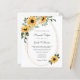 Este convite de casamento para o girassol e o bebê é perfeito para um casamento no celeiro ou rancho. Este convite apresenta girassóis amarelados de cor aquosa com rosas brancas e o hálito do bebê e a vegetação sensual. Este é um esquema de cores perfeito para o final do verão ou casamento outono Faça este convite seu, incluindo seus nomes e todos os detalhes do seu casamento. Para mais personalização, clique no link "personalizar mais" e use nossa ferramenta design para modificar esse modelo. Adicione uma foto ao verso para personalizar ainda mais este convite.