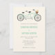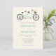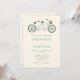 Um convite de casamento moderno com uma bicicleta tandem com uma cesta e flores. Pergunte sobre cores personalizadas!
