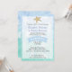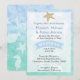 Chamada de Casamento Colorida Blue Beach com cavalos de mar submarinos brancos, estrelas-do-mar e curral. Adicione seus detalhes de casamento para um convite de praia.