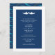 O convite perfeito para qualquer casal amoroso do tubarão. Fundo azul clássico do marinho com silhueta branca de tubarão. A parte de trás do convite tem um padrão de onda moderno.