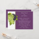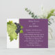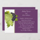 Convite de casamento apresentado num formato clássico, mas fresco, em cores de verde-oliva lt e roxo-uva com texto branco num roteiro com impressão de arte de uvas. Perfeito para o casal que planeja se casar na área do vale de napa ou qualquer lugar de adega. Personalize este convite e altere o texto apropriado para o seu.