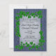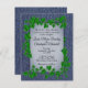 Um convite encantador de denim com um vinho sobrecarregado. Coloque os primeiros nomes do casal de um lado com toda a informação do casamento e saudação no reverso. Por favor, verifique triplicamente todo o seu texto.