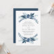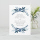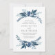 Nosso convite de casamento do Wild Azure cerca seus detalhes do dia do casamento com uma borda redonda de folhagem gelada em tons de céu, flor de milho e azul marinho. Uma escolha moderna, mas orgânica, para casamentos no inverno que apresentam elementos botânicos pintados intricadamente em legal blues.