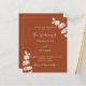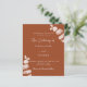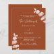 Fundo laranja escuro queimado, decorado com caules de eucalipto, galhos. Personalize e adicione seus nomes e detalhes. Fundo: fundo laranja poeirento escuro.