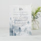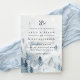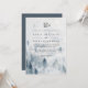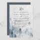 O convite para casamentos no inverno elegante apresenta um fundo de aquarela que representa uma paisagem de montanha nevada pontilhada com pinheiros em tons sombrios de azul e cinza. Personalize com os detalhes do seu casamento em letras brancas e suaves, ligadas com seu monograma ou duograma e unidas por um amperse de escrita decorativa. Uma bela escolha para casamentos no inverno elegantes em zonas montanhosas ou florestais.