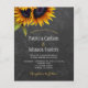 Elegante verão rústico ou na moda de outono barato de casamento outono de modelo de outono no quadro negro de carvão de cinza apresentando um belo buquê de girassóis. ++++++++ Fácil de personalizar com seus detalhes. +++++++++++++++ O convite é adequado para casamentos elegantes de fazendas ou celeiros ao ar livre com rústica. +++++++++ LEIA ISTO ANTES DE COMPRAR! Este é um cartão de casamento de barato orçamentário impresso em uma folha de papel (cada folha tem um cartão). +++ Para obter a melhor qualidade de preço, nosso conselho é escolher o tipo de papel Semi-Gloss (é espesso o suficiente para ser usado para papelaria) +++ Se você precisar de envelopes, escolha a OPÇÃO ENVELOPE. ++ Verifique duas vezes todas as informações e a ortografia do seu texto porque você receberá exatamente o que você vê - ninguém mais verificará nada antes de imprimir. +++ Esta placa foi projetada para o tamanho de 4,5" x 5,6". Caso você escolha outro tamanho do cartão e o texto saia da página, tudo precisa ser corrigido antes de adicionar o produto ao carrinho. Peça ajuda ao Serviço de Design ao Vivo.