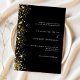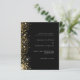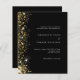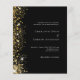 Um convite de casamento moderno e elegante. Fundo preto decorado com brilhos dourados falsos. Personalize e adicione seus nomes e detalhes do casamento. Letras brancas coloridas.