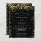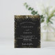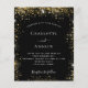 Um convite de casamento moderno e elegante. Fundo preto decorado com brilhos dourados falsos. Personalize e adicione seus nomes e detalhes do casamento. Letras brancas coloridas.