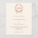 Um fundo colorido bege decorado com uma crista- Personalize e suas iniciais, nomes e detalhes do monograma. 1 folha = 1 convite impresso de borda a borda.