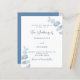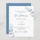 Um fundo branco, decorado com caules de eucalipto azuis empoeirados, galhos. Personalize e seus nomes e detalhes. Fundo: fundo azul empoeirado.