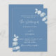 Fundo azul poeirento, decorado com caules de eucalipto, galhos. Personalize e seus nomes e detalhes. Fundo: fundo azul empoeirado.