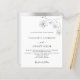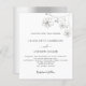 Um convite de casamento moderno, elegante e minimalista. Frente: fundo branco decorado com florais prateados. Personalize e adicione seus nomes e detalhes do casamento. Letras pretas coloridas. Fundo: falso prata olhando fundo.