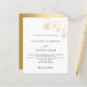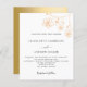 Um convite de casamento moderno, elegante e minimalista. Frente: um elegante fundo branco decorado com falsos florais de ouro. Personalize e adicione seus nomes e detalhes do casamento. Letras pretas coloridas. Volta: um fundo de ouro falso.