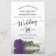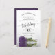 Este belo convite para o casamento apresenta uma design romântica com um solteiro de longa duração empilhada rosa roxo, deitada do lado dele e refletindo numa piscina de água. A tipografia apresenta caligrafia de script e um layout sofisticado. A parte de trás é uma cor roxa marmoreada profunda. Uma maravilhosa maneira de convidar seus amigos e família para compartilhar sua alegria em seu dia especial.