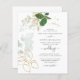 Orçamento Verde-verde-botulado convite para casamento de folha de ouro com um toque moderno que você pode facilmente personalizar para enviar para seus amigos e família para seu dia especial.