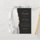 A borda esquerda deste elegante convite de casamento moderno apresenta uma cinza e uma aquarela branca, aparada com falsa brilho dourado. O texto personalizável combina manuscrito dourado, fontes em copperplate e itálico em um fundo preto de slate. O verso apresenta uma cinza correspondente, design de agate branco e ouro.