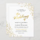Convites modernos de casamento orçamentários com um elegante fundo branco que pode ser mudado para qualquer cor, brilho dourado brilhante, e um modelo de casamento que é fácil de personalizar.
