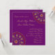 Este convite para o casamento inspirou um fundo roxo com elementos decorativos dourados e joias vermelhas simuladas num padrão Paisley superdimensionado. Se necessário, podem ser acrescentadas informações adicionais ao verso. Totalmente personalizável, este convite pode ser redefinido para qualquer ocasião. Se você precisar de assistência para personalizar este design ou quiser que o design em um produto diferente, use o link "contato" ou "enviar mensagem".