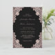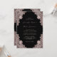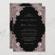 Estes elegantes convites de rosa e casamento preto com rendas florais de rosa de ouro em fundo preto são perfeitos para convidar seus hóspedes para sua festa de casamento rústica de ouro preto e rosa.
