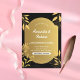 Faça uma declaração ousada e elegante com este convite de casamento de luxo, desenhado com uma sofisticada mistura de ouro e preto. Apresentando folhas tropicais ouros, tipografia moderna da escrita e um layout formal limpo, este convite dá o tom para uma celebração chic, em escala superior. Perfeito para casamentos noturnos, casamentos de destino, ou festas de glam jardim, este convite temático tropical mistura luxo com calor e talento moderno. Personalize com seus nomes, data do casamento, detalhes do local e informações de RSVP. Perfeito para: Casamentos Dourados e negros de luxo Casamentos tropicais ou de destino Casamentos glamourosos de jardim