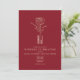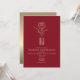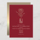 Um convite de casamento ousado e elegante com fundo vermelho profundo, tipografia moderna mínima e uma ilustração monográfica refinada de rosa em ouro metálico. Esta design combina celebrações românticas de casamento com um toque luxo, ideal para o inverno, outono ou eventos noturnos formais. Coordena-se perfeitamente com decoração de recepção e artigos de papelaria com ênfase no ouro.