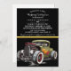O convite para o casamento do incêndio da festa do Hot Rod tem uma chama laranja queimando e em volta de um carro velho. No fundo ao meio e um fundo preto com um lugar para colocar todo o seu texto de convite. Esta design única combina um convite formal de casamento com uma vibrante ilustração de haste quente. A parte superior apresenta detalhes para seu nome e seu nome celebração de casamento no "sábado, 18 de janeiro, 20XX" em Vancouver, BC. Abaixo, uma vareta quente poderosa e brilhante com motor exposto e tubos de escape acelerados, criando um impressionante contraste de temas. Tudo personalizável.