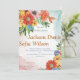 convite de casamento. O design alegre apresenta flores silvestres coloridas de aquarelas misturadas com folhagem verde-esfarelada. Use os campos de texto para personalizar o cartão com seu próprio texto e detalhes. Se quiser alterar o estilo da fonte, a cor ou o posicionamento do texto, basta clicar no botão "Personalizar Mais".