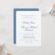Convite de casamento elegante em estoque de cartão texturizado com elegante azul cursivo e fonte serif com sua data de casamento e uma opção para adicionar seu código QR exclusivo no verso.
