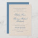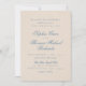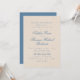 Convite de casamento elegante em estoque de cartão texturizado com elegante azul cursivo e fonte serif com sua data de casamento e uma opção para adicionar seu código QR exclusivo no verso.