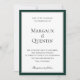 Fortes esmeraldas escuras e cinzas prateadas em camadas com tipografia elegante, convite para casamento. Estilo de design moderno e simples.