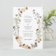 Convite para Casamento de Flor Selvagem Elegante. Este convite de casamento na moda e elegante apresenta lindas flores de aquarela pintadas manualmente, organizadas como uma coroa adorável com um padrão adorável nas costas. Encontre itens correspondentes na Coleção de Casamentos de Flores Selvagens de Branca.
