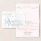 Este belo convite para o casamento é impresso em papel real na frente e atrás do cartão. O texto do dentro é cor-de-rosa e cinza sobre um fundo rosa pálido e apresenta todos os detalhes e informações do casamento. Uma bela maneira de convidar seus convidados para o seu dia especial. Texto totalmente personalizável.